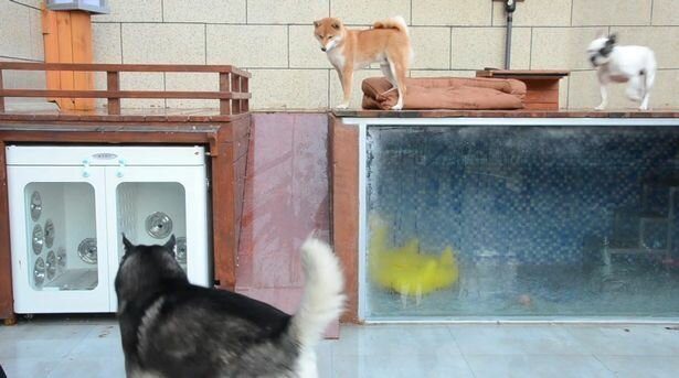 Это жилье оснащено системой обогрева, чтобы зимой собаки не страдали от холода. А в летнее время они могут вдоволь поплавать в бассейне, оборудованном системой очистки воды.