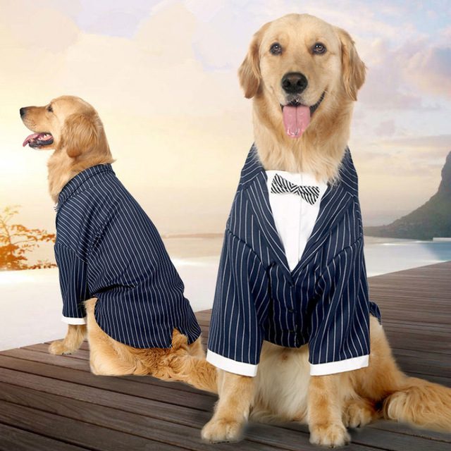 Выбор настоящих джентльменов! В таком сопровождения любая девушка почувствует себя изысканной леди. Смокинг изготовлен из 100% хлопка, подходит для всех сезонов, не сковывает движения собаки и гарантирует ей комфорт. На сайте есть огромный выбор размеров костюма, поэтому приобрести его могут владельцы собак как крупных, так и маленьких пород.