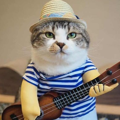 Этот костюм идеально подойдет для фотосессий с участием домашнего любимца. Состоит наряд из полосатой футболки и гитары, кучерявый парик приобретается отдельно, по желанию. Но только взгляните, как хорошо они смотрятся вместе!