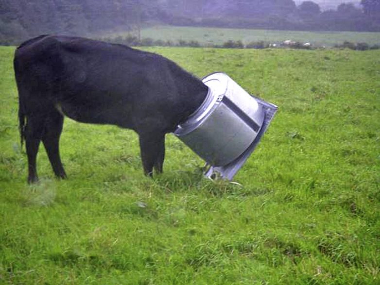 9. Корова застряла в барабане стиральной машины.