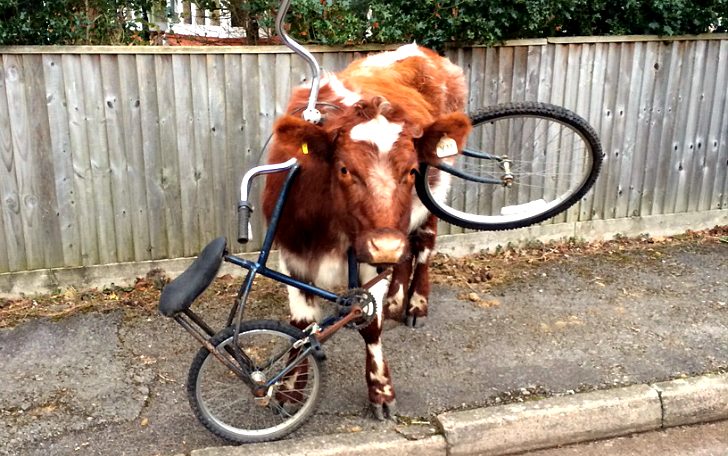 22. Корова застряла в велосипеде (но как?).