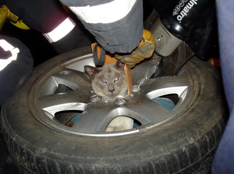 13. Кот Каспер застрял в колесе.