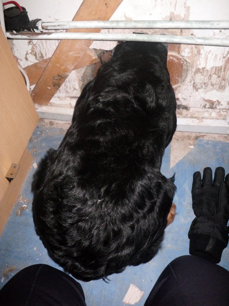 15. Этот пес застрял в дверце для кошек.