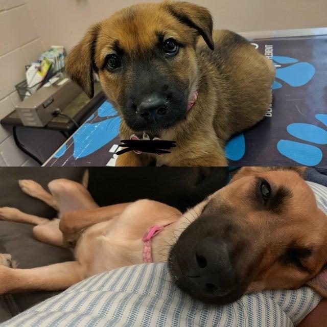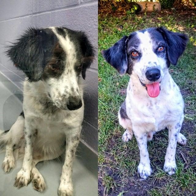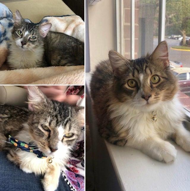 Это Луна и на первом фото она просто кожа да кости. Зато посмотрите, какой она стала потом!