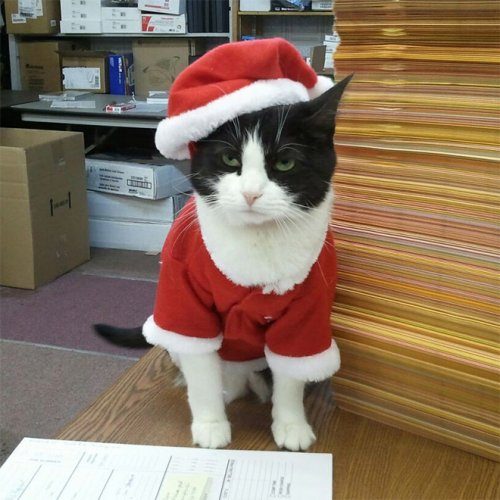 То ли у них отобрали мишуру, то ли они не могут достать до ёлки, установленной «антивандальным» способом, но, судя по мордахам этих пёселей и котеек, с новогодним настроением у них как-то не заладилось.