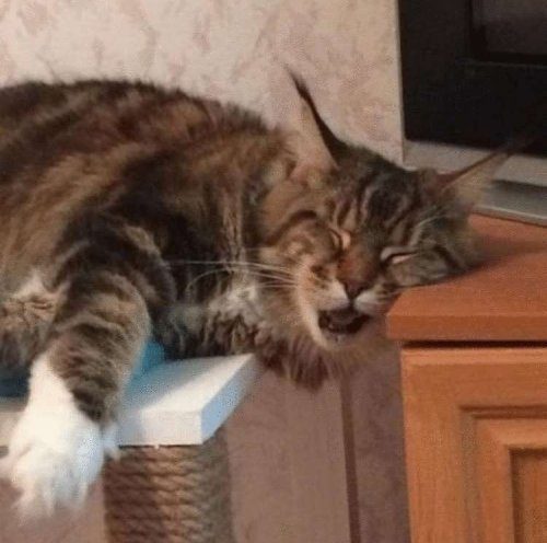 Кошки спят до 16 часов в сутки и им абсолютно все равно где уснуть, лишь бы им — кошкам — было удобно.