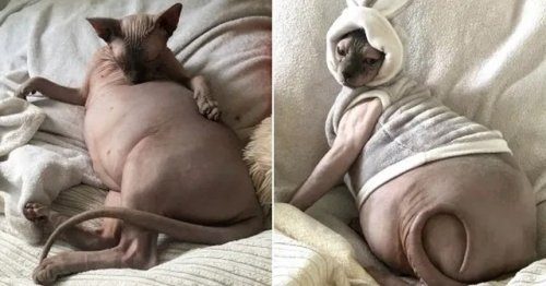 Жительница Вены, Австрия, Яна Мартинка сняла забавное видео, в котором очень дородный 7,5-килограммовый кот сфинкс по кличке Амстердам сидит в позе Будды и спит, будто медитирует.
