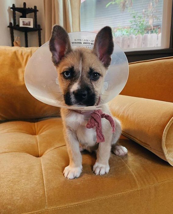 Волонтеры первым делом отвезли его к ветеринару, который диагностировал только истощение и обезвоживание. Других проблем со здоровьем у щенка не было. Волонтеры откормили его и довольно быстро нашли новый дом.