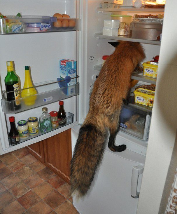 но морда-то какая хитрая. Холодильник уже открывает, скоро научится и бутылки открывать.
