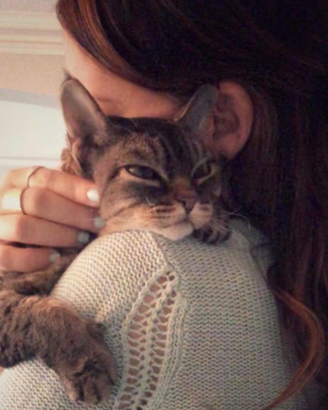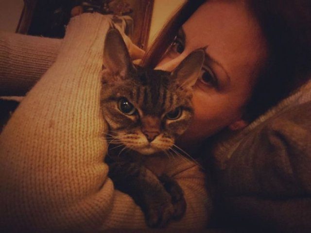 Её владелица, Сара Борок (Sarah Borok), говорит, что на привыкание к ней кошке, взятой из приюта, понадобился месяц: сначала она была агрессивна по отношению к Саре, но день за днём, неделя за неделей, стала привыкать к ней и приняла её за свою. Теперь они ─ не разлей вода.