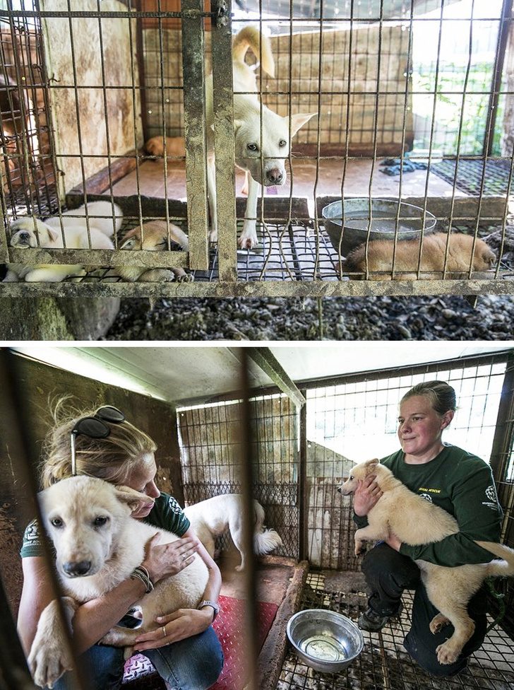 8. Благодаря стараниям зоозащитников в Южной Корее закрыли собачью ферму. От неминуемой гибели спасли около 100 несчастных животных