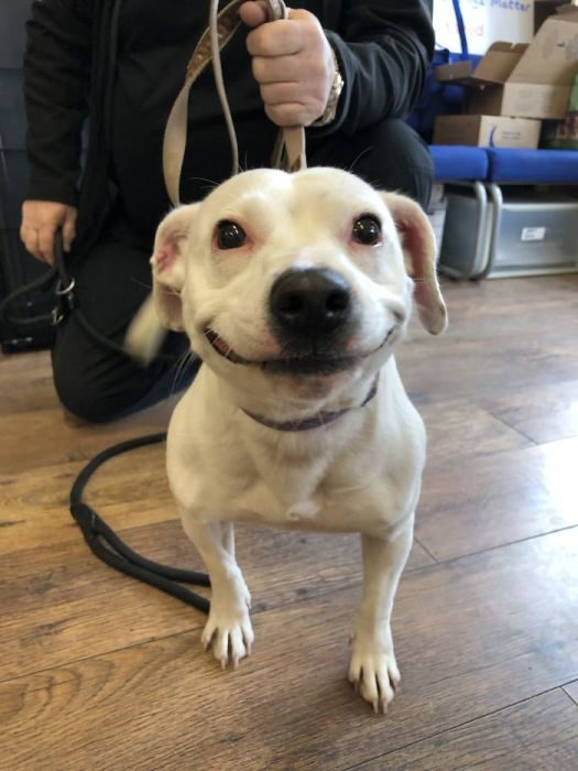 Именно такое строение морды посчастливилось иметь метису стаффордширского терьера Сивилле. Бездомная собака попала в обычный лондонский приют для домашних животных, и её судьба могла бы окончиться очень печально, если бы не жизнерадостная улыбка.