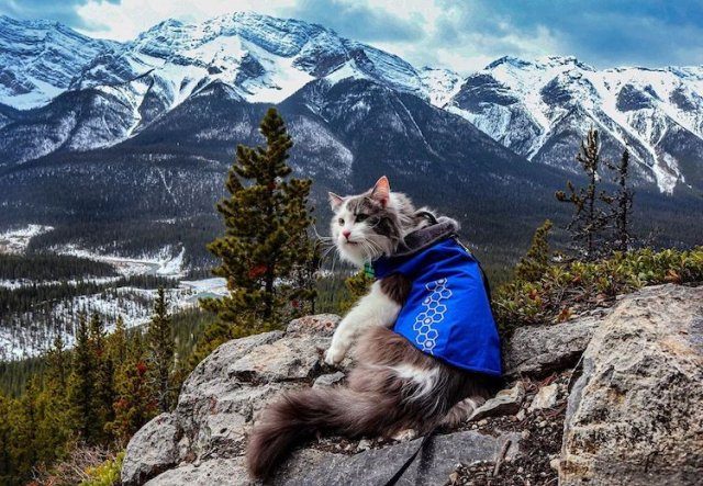 5-летний кот вместе со своими солапниками и братьям и-собаками отправляется в походы в Канадские Скалистые горы.