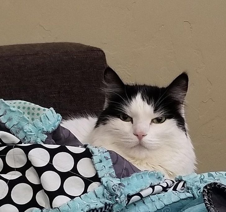 «Мой кот любит спать на кровати. Но, когда кто-то входит в комнату, он начинает орать»