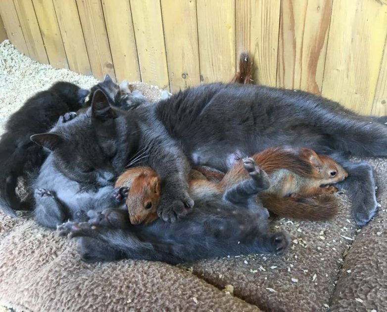 Кошка приняла бельчат. Хотя сперва не могла понять, что это у нее за странные котята. Но вскоре начала их облизывать. Этому обрадовались сотрудники зоосада. К счастью, всё сложилось как нельзя лучше.