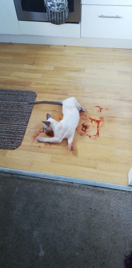 Как тут не вспомнить пост нашего соотечественника с ником @iProcione, который поведал историю своего кота? Начиналось все тоже буднично — поутру он нашел животину вот в таком виде: