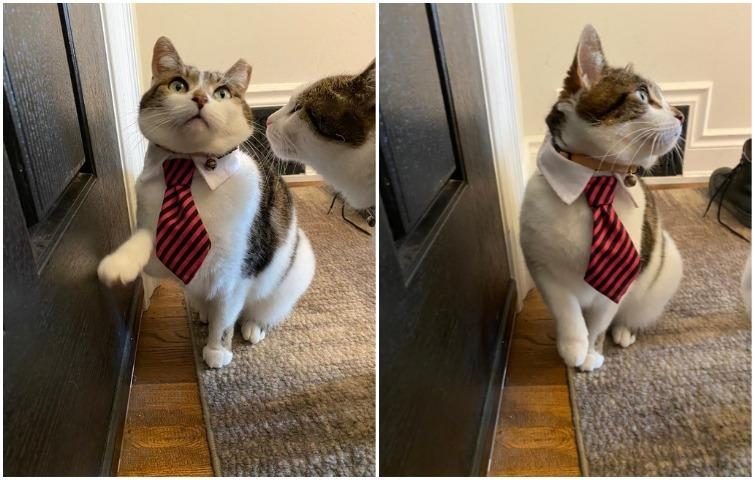 «Мой младший брат работает из дома и хотел, чтобы его кошка выглядела более «профессионально», когда он принимал участие в командных видеовстречах, поэтому он купил ей набор галстуков»