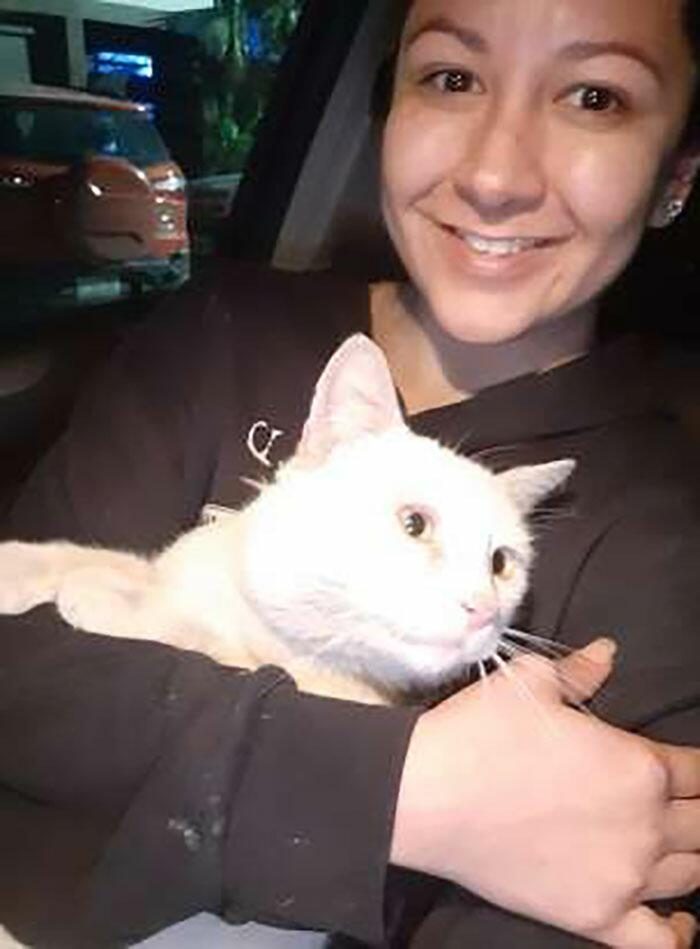 33-летняя учительница начальной школы Таня Лизбет Сантос Кой Това заметила белого бездомного кота недалеко местного супермаркета в Пьедрас Неграс, Мексика.