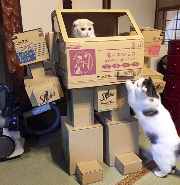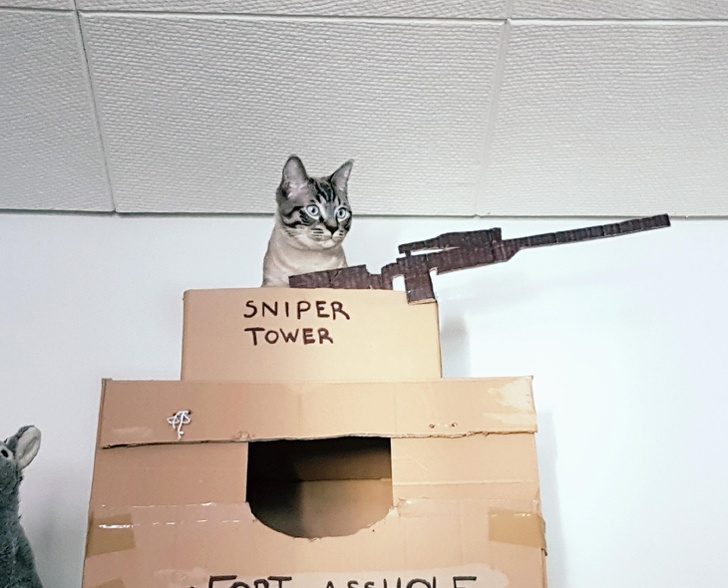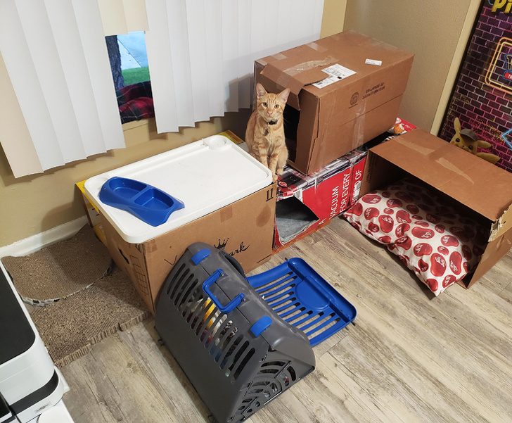 «У нас с парнем нет лишних денег на покупку кошачьего комплекса. Поэтому он сделал домик из коробок»