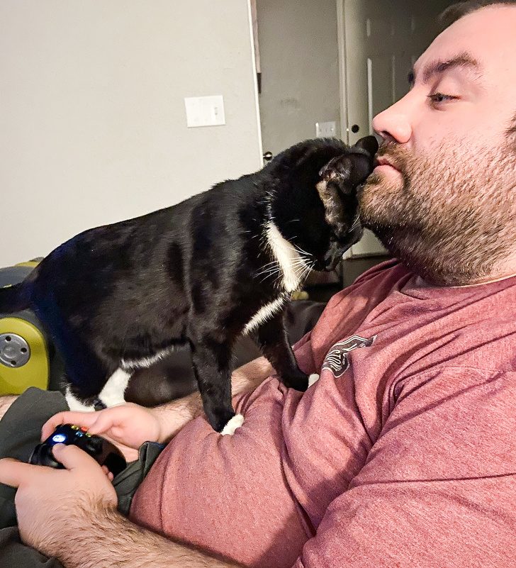 Котику важно держаться лапкой за человека во сне и он никогда его не поцарапает