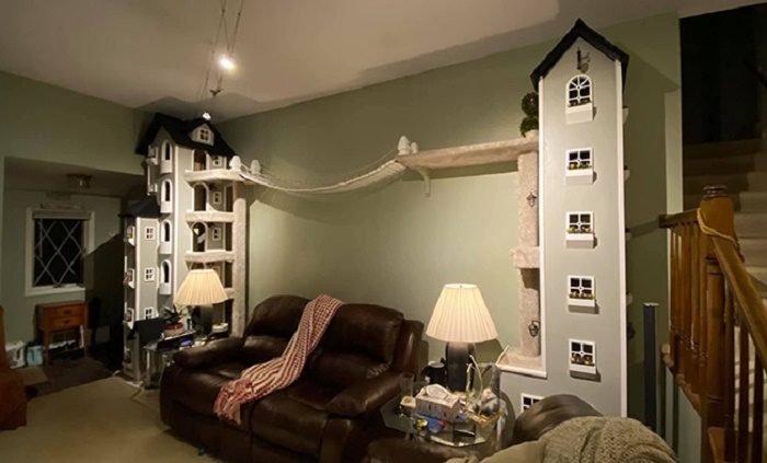 Многие специалисты рекомендуют владельцам ставить для кошек специальные конструкции для лазания, которые можно купить в зоомагазинах. Зная природную потребность этих животных, Роб Кут из американского штата Коннектикут решил построить для своих кошек настоящий город с высокими домами-замками. И вот что из этого вышло…