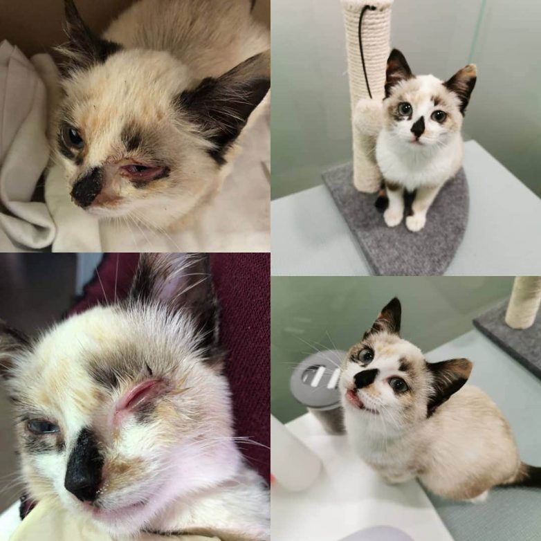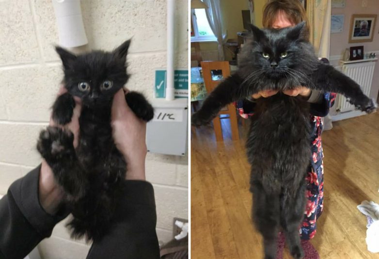 Разница между снимками всего неделя, но она хорошо показывает, как поменялась кошка, которая обрела новый дом