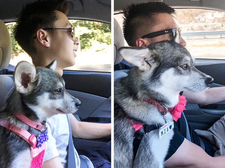 «Я и моя собака в 16 недель и в 4 года. Теперь она стала лучшим одеялом»