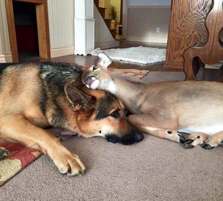 Сардж – пес-спасатель, со специализацией на выхаживании сироток всех видов. Самая сильная связь у него с оленятами.