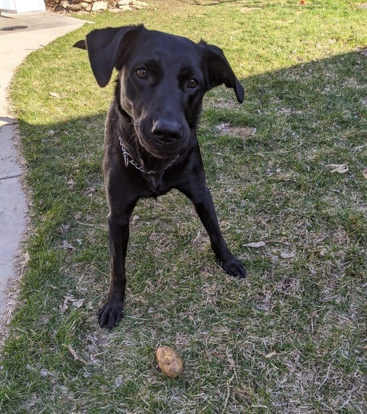 Несмотря на целый ящик игрушек, она предпочитает гонять картофелину!