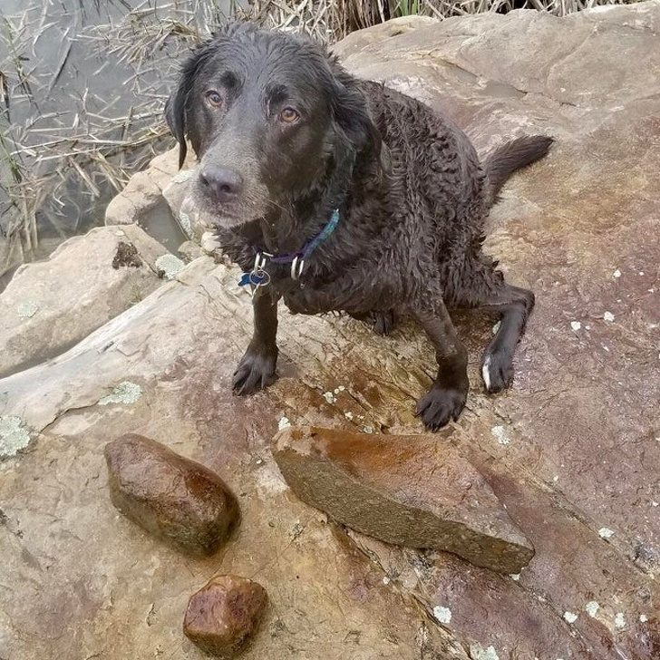 «Она думает, что ее работа — вытаскивать камни из озера. Самый большой весит больше 6 кг. Собаке 12 лет»