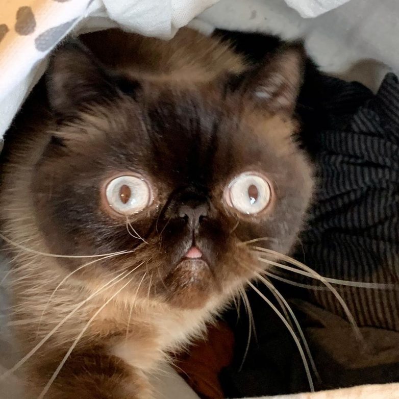 Просто Икиру потомок короткошерстных экзотов с их характерным строением мордахи, отсюда и привычки такие