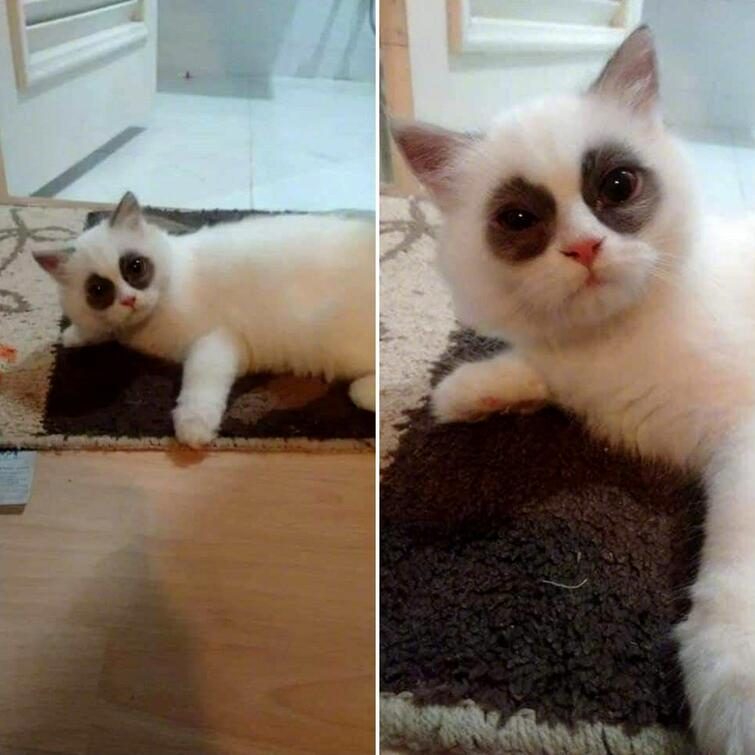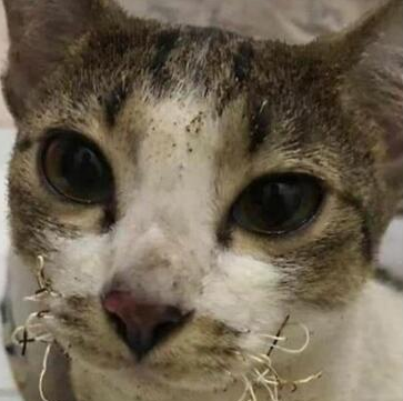 Бедный котейка---всю моську и грудь себе опалил, а усы ваще кошмар… Хозяева вы где были?!!!