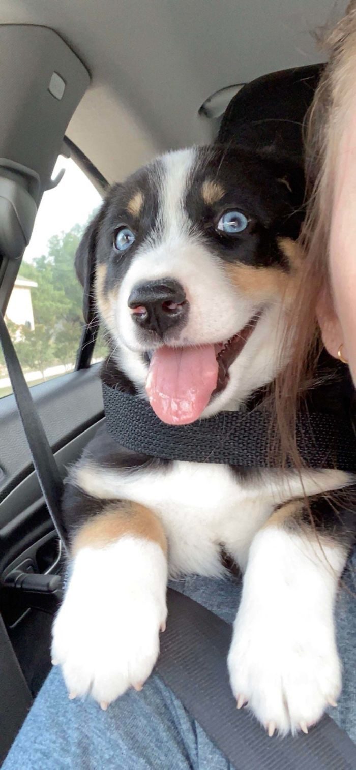 Песик, которого забрали из приюта, не спускает взгляда с нового хозяина