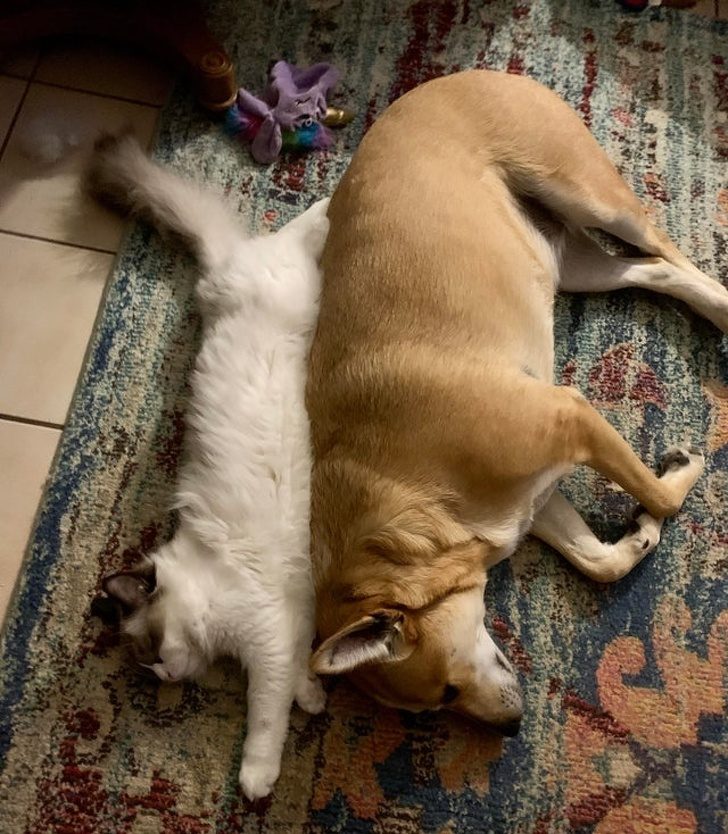Почему бы большой самодостаточной собаке не поиграть в маму с котенком?