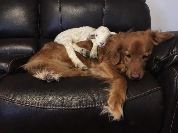 «Моя кошка думает, что наша собака — ее мама. С таким успехом она действительно могла бы ею быть. Они все время обнимаются»