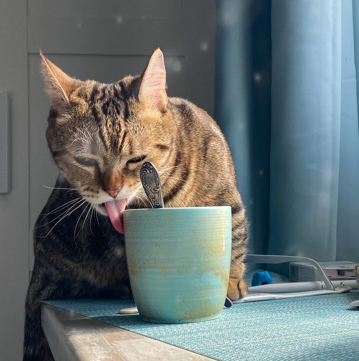 «В его распоряжении любая поверхность на кухне, но он, конечно, захотел посидеть в моей тарелке»