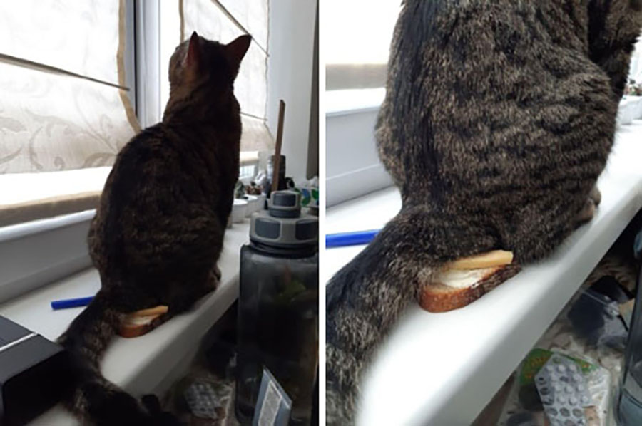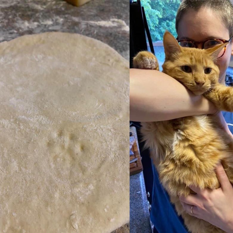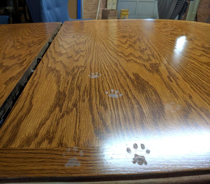 Свежий слой лака на столешнице помог кошке оставить «след в истории»