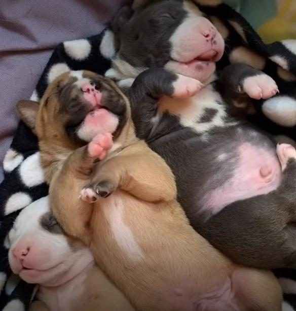 Когда молодой человек привез собачье семейство домой, то первым делом устроил всем уютный уголок. Он постелил коврики и положил на них трех малышей, а мама улеглась рядом.