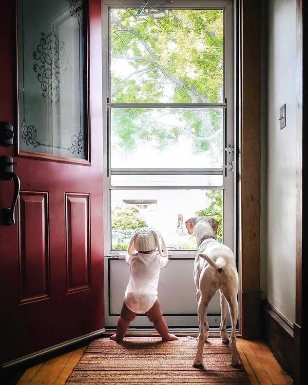 Когда Элизабет вернулась из роддома, то она дала обнюхать Арчи своей питомице. После этого собака начала буквально ходить по пятам сначала за Элизабет, которая носила Арчи, а когда он стал старше и научился ходить, то и за ним.