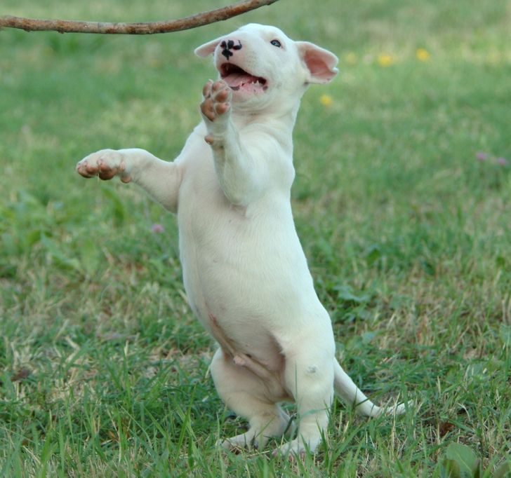 Несмотря на свой грозный вид, бультерьер — настоящий английский аристократ. Хотя изначально этих собак использовали как бойцовых, для боя с быками: низкорослые псы с мертвой хваткой подходили для этого как нельзя лучше.