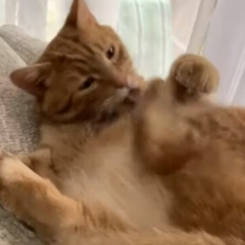 Рыжий кот решил почесать себя за ушком, но кажется забыл как это делать. Лапа питомца обернулась против него и начала бить.