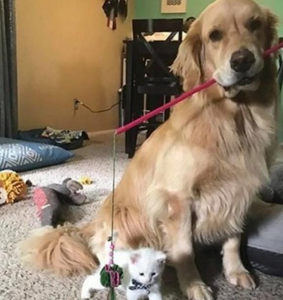 Как же замечательно, что белый пушистик смог найти заботливую семью и даже двух приемных мам — человека и собаку.