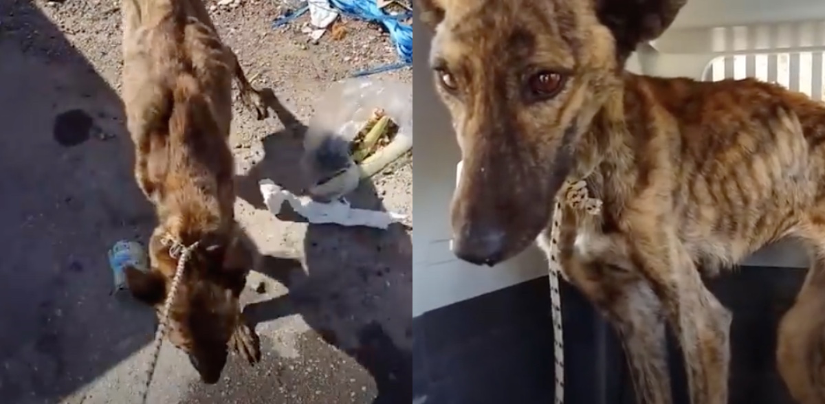 Ее нашел Такис — мимо проходящий мужчина. Животное сидело на помойке, и было очень озлоблено. Оно лаяло и рычало на всех, кто пытался подойти хоть немного ближе. На шее виднелась оборванная веревка, и было понятно, что собака из последних сил вырвалась из плена голода.