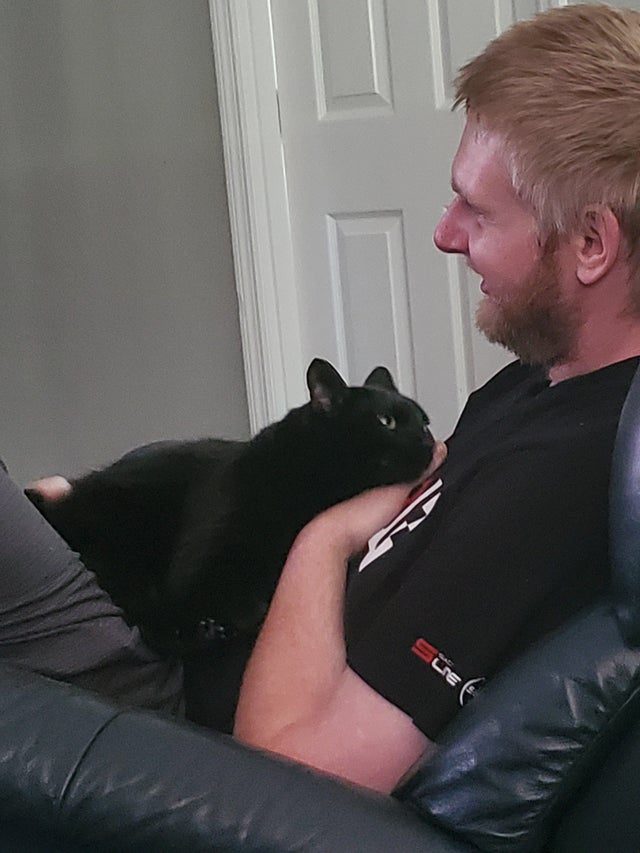 Они только взяли котенка и вот как он смотрит на своего хозяина