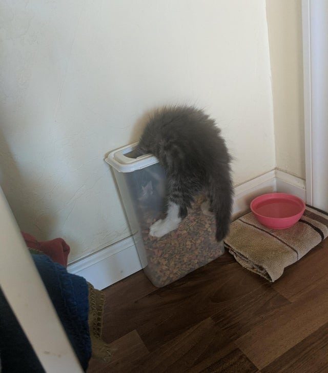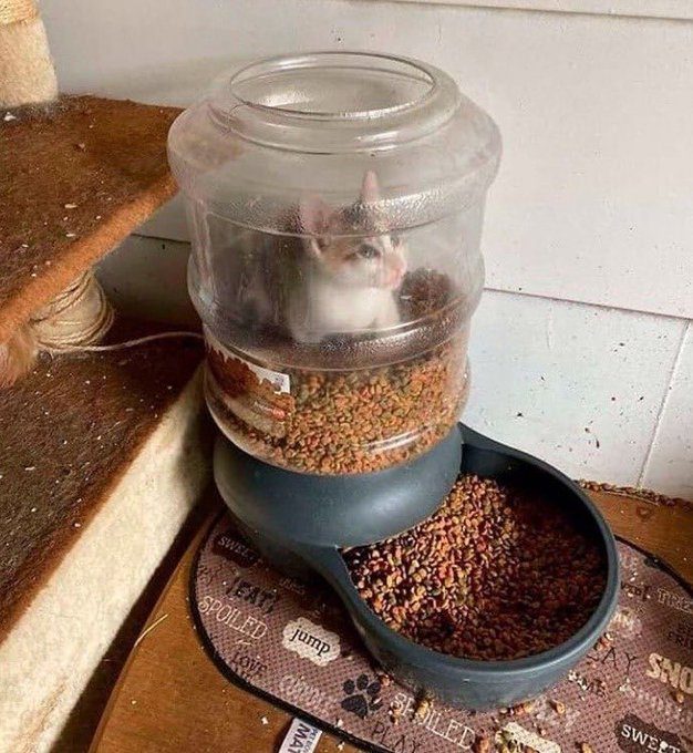 Залез, исполнил мечту всех кошек, побарахтался в еде. Дальше что?