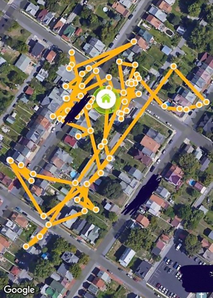 Трекер показал, что по ночам Джордан разгуливает по довольно большой территории, заходя по нескольку раз в одни и те же дома по всему району.