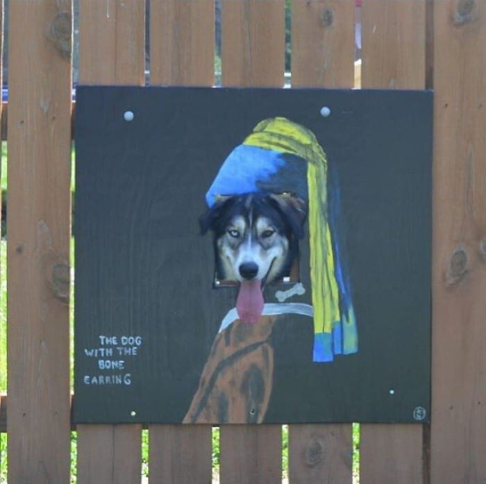 «У нас две собаки, Бургер и Рипли. Но Рипли более осторожная и меньше доверяет прохожим, больше лает. А вот Бургер любит внимание. Окно в заборе — первое место, куда он идет, когда я выпускаю его на улицу».