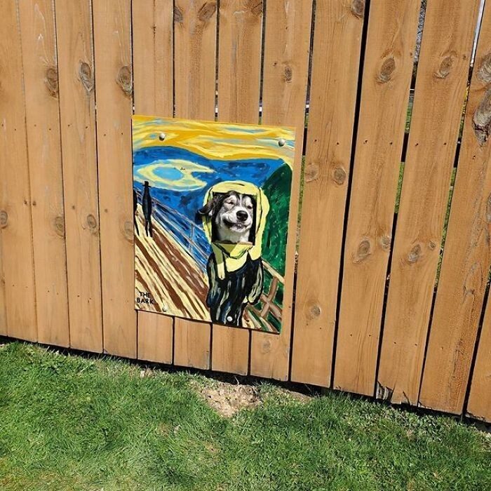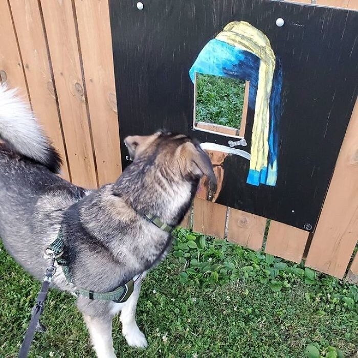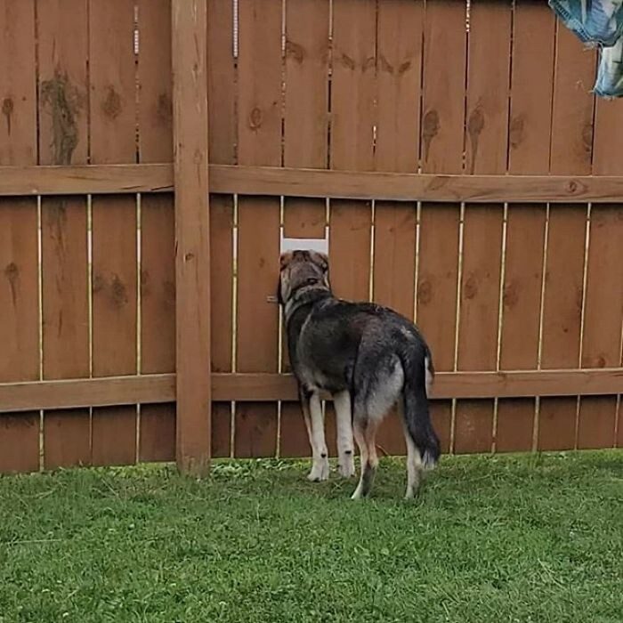 «Все началось в августе прошлого года, когда Бургеру было всего несколько месяцев, и он начал копать под забором, чтобы видеть проходящих мимо людей. Чтобы решить эту проблему, я прорезал для него в заборе „окно в мир“. Он сразу начал использовать это окно и перестал копать», — рассказывает Брайн Стэнли.