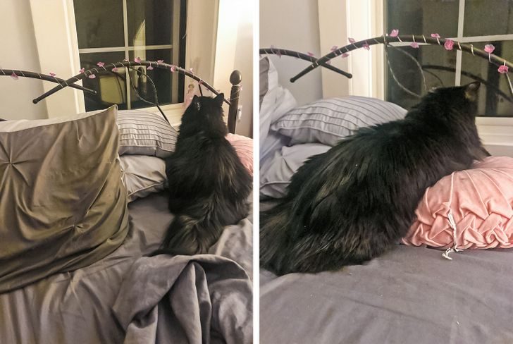 «У мамы живет кот, которому лень есть из миски, и его кормят кошачьими консервами из рук»© Svetlana Gorskaya / Facebook«У него есть 2 большие кошачьи лежанки. Но вместо того, чтобы спать на них, моя домашняя пантера отняла у меня половину моей кровати»