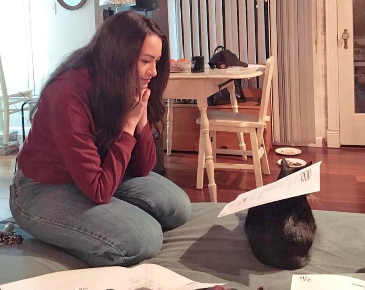 «Кот помогает мне учиться — он просто лег на меня, чтобы я не могла встать»